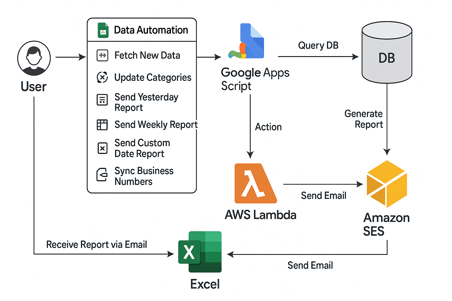 • Google Apps Script (GAS): 시트 기반 유저 인터페이스, Lambda 호출, Slack 연동